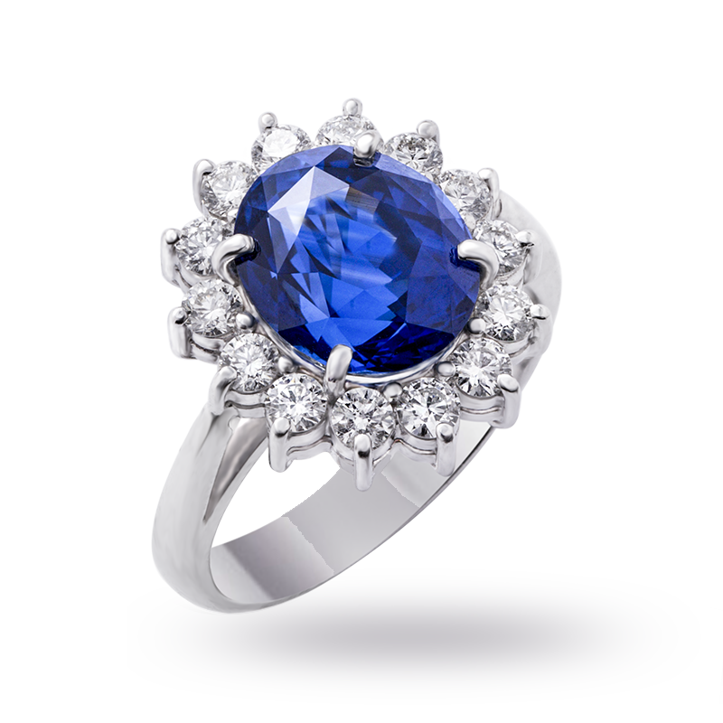 White gold Ring with 1 Blue Star Sapphire of 6.06 carats and 42 Diamonds of 0.42 carats in total